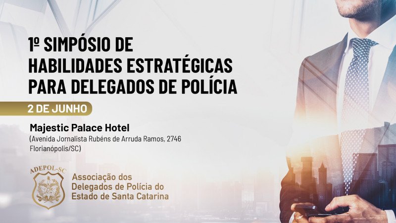 A Associação dos Delegados de Polícia do Estado de Santa Catarina (ADEPOL-SC), realizará no próximo dia 2 de junho, no Majestic Palace Hotel, em Florianópolis (SC), o 1º Simpósio de Habilidades Estratégicas para Delegados de Polícia.