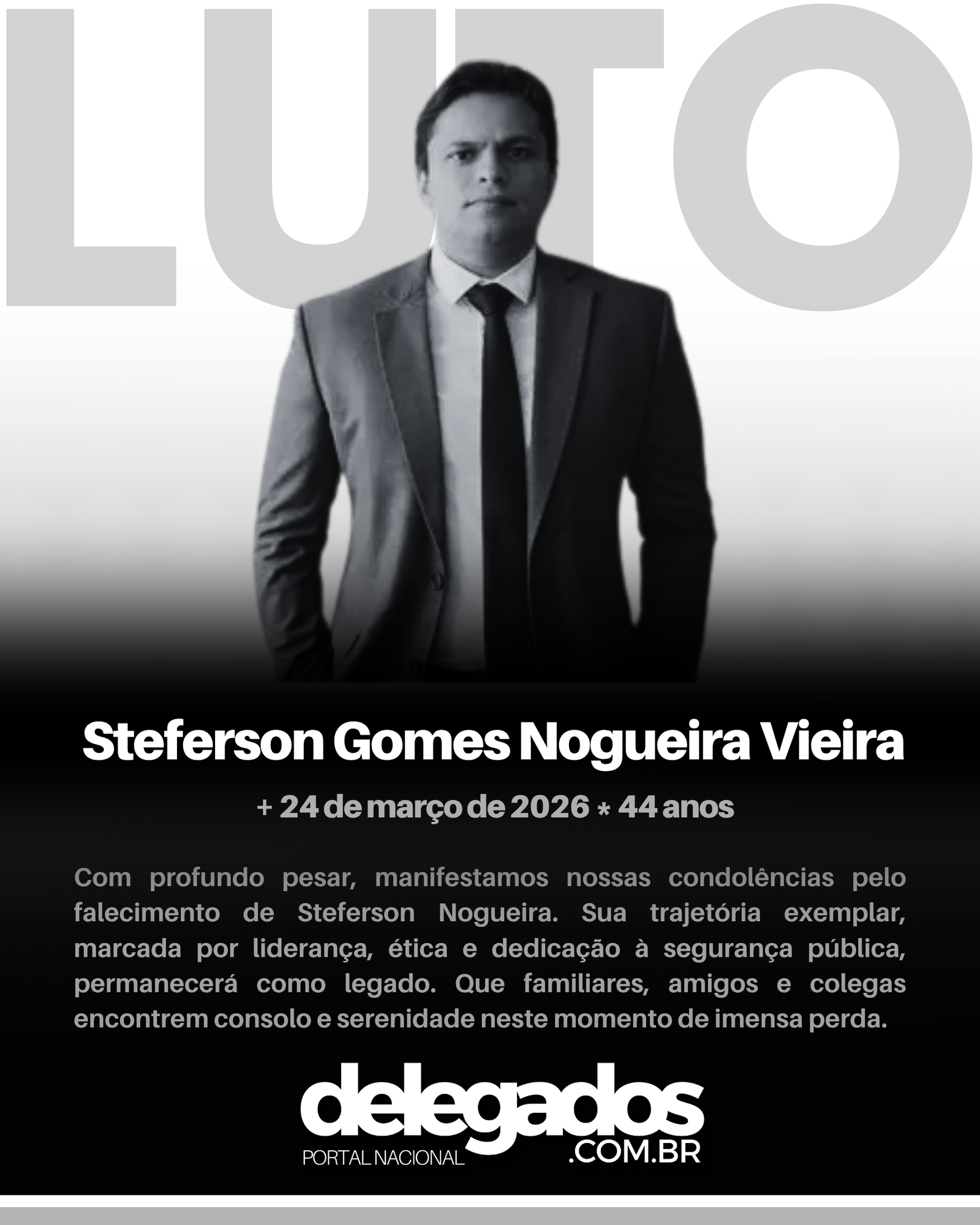 O falecimento do delegado Steferson Gomes Nogueira Vieira, presidente da Associação de Defesa das Prerrogativas dos Delegados de Polícia da Paraíba (Adepdel-PB), provocou forte repercussão no cenário da segurança pública estadual e nacional. Reconhecido por sua atuação estratégica, ele se destacou como uma das principais vozes na defesa da valorização da Polícia Civil paraibana.