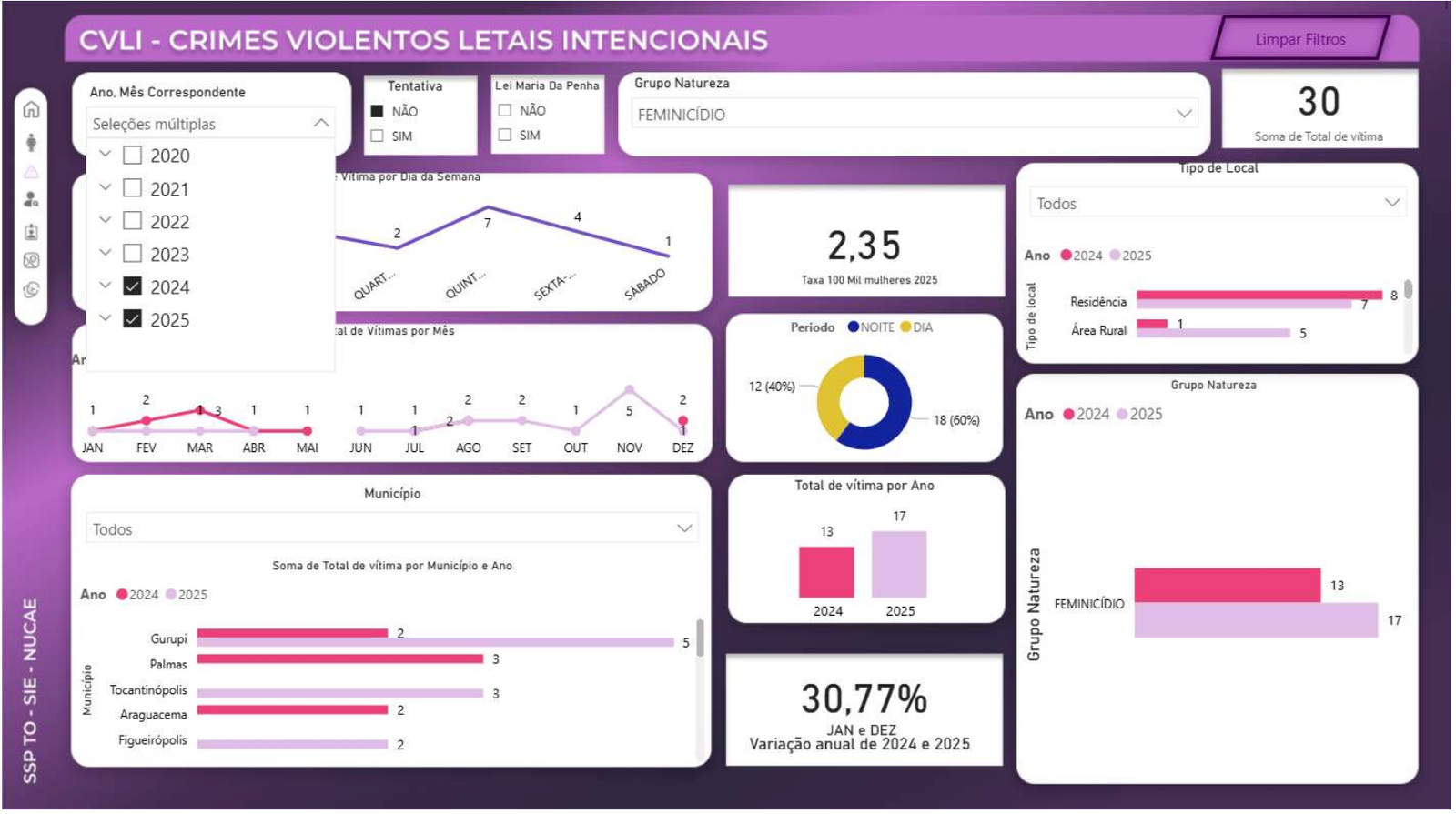 Por trás desses números, há um padrão que repete uma velha realidade. A maioria dos feminicídios acontece dentro de casa, em residências que deveriam ser abrigo, mas se transformam em cenário de medo e agressão. Municípios como Palmas, Gurupi e Araguaína aparecem com concentrações maiores de casos, ao lado de cidades menores que também figuram nas estatísticas, mostrando que o problema não é exclusivo das grandes zonas urbanas. Na prática, o risco se espalha pelo território: está na capital, no interior, na periferia e na zona rural.