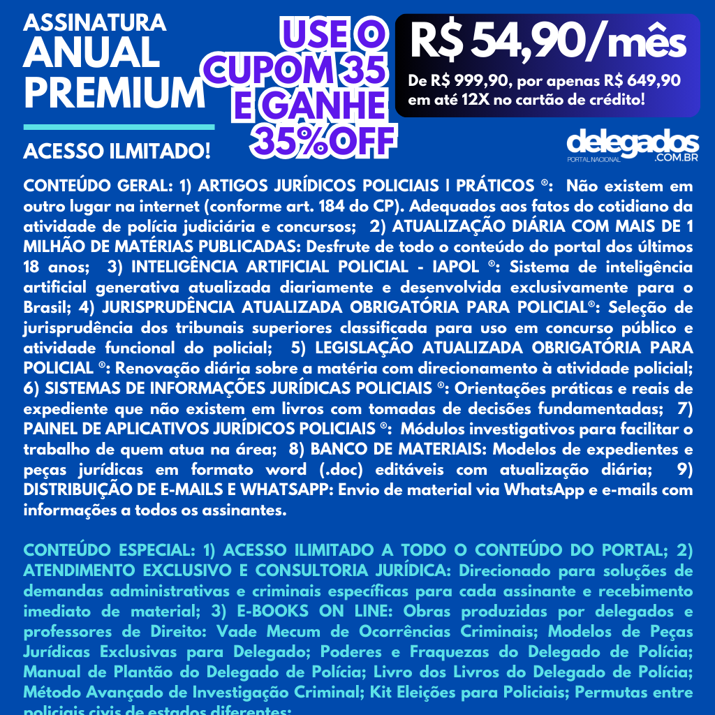 USE O CUPOM: “35” E GANHE 35% OFF PROMOÇÃO POR TEMPO LIMITADO! ASSINATURA PREMIUM ANUAL De R$ 999,90, por apenas R$ 649,90! Em até 12X no cartão de crédito!